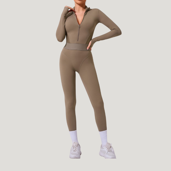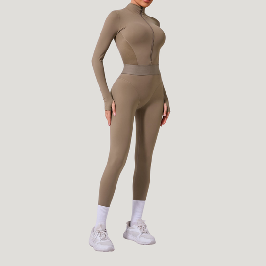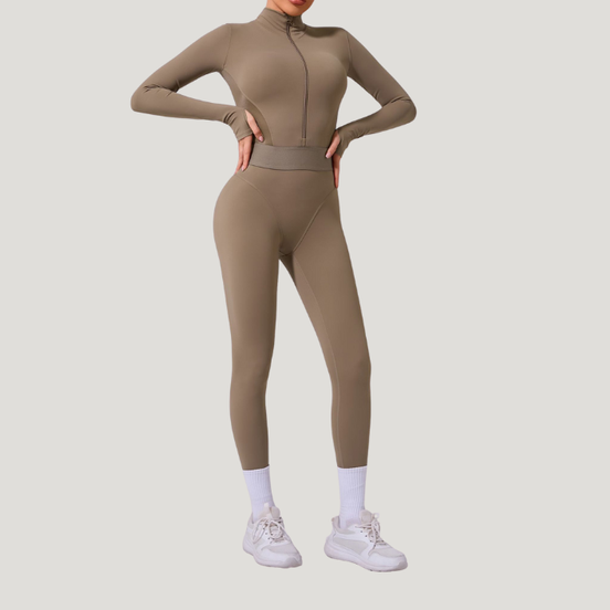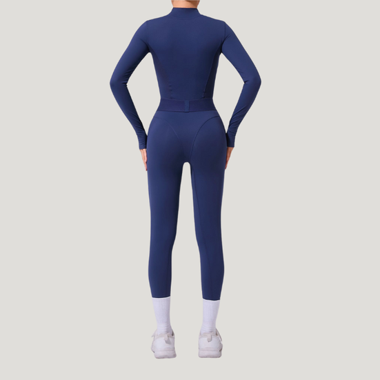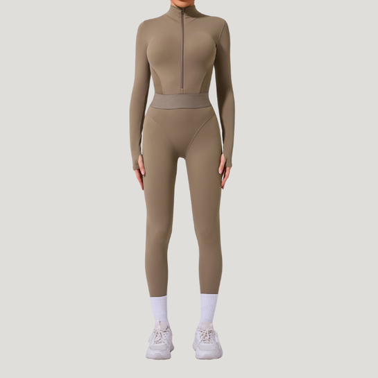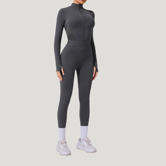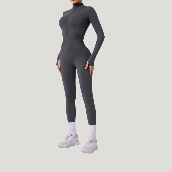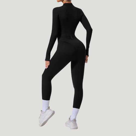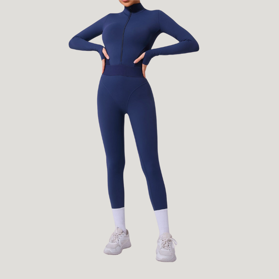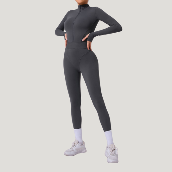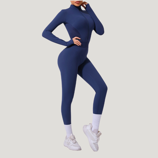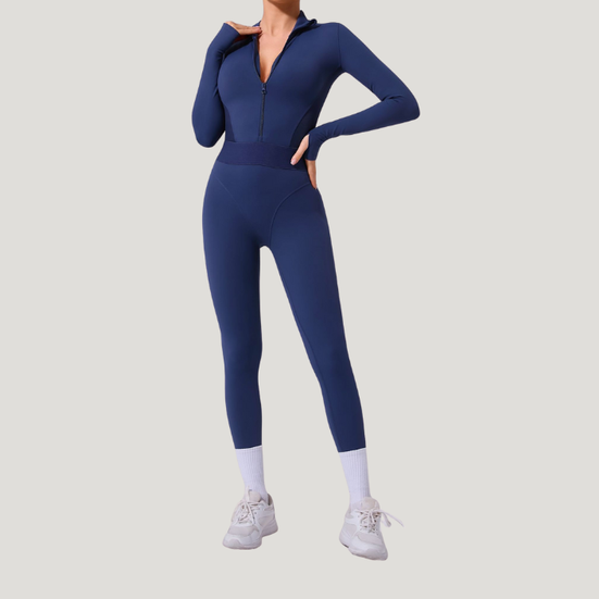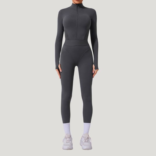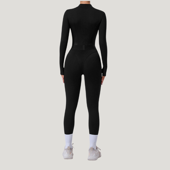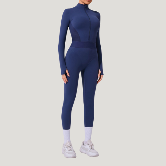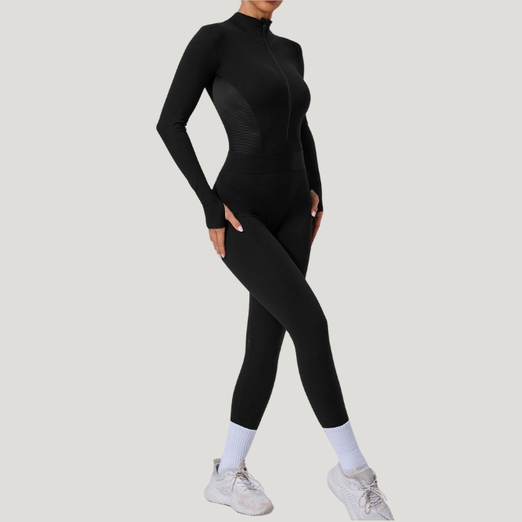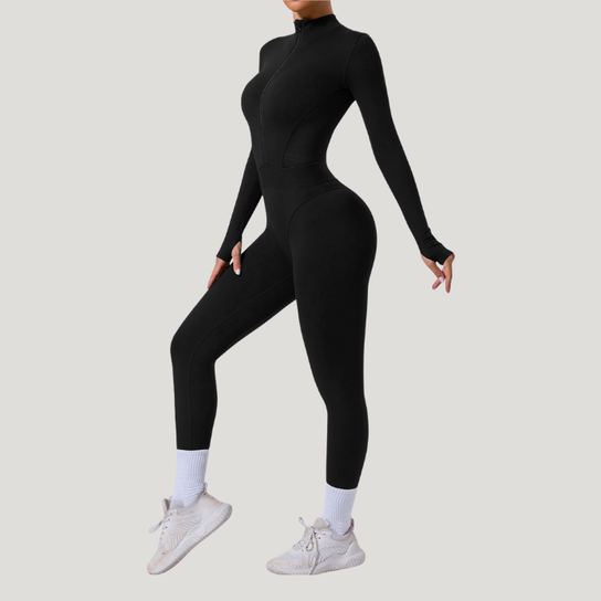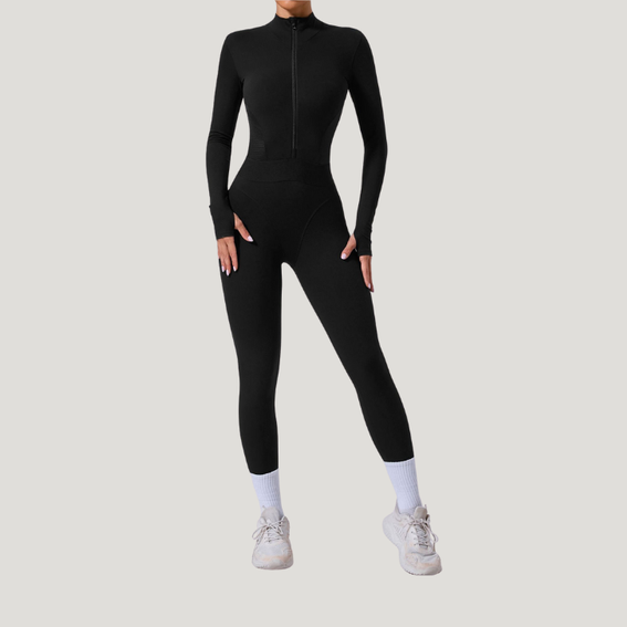 - Sleek full-body silhouette with a high neckline and front zipper closure for a streamlined, modern look