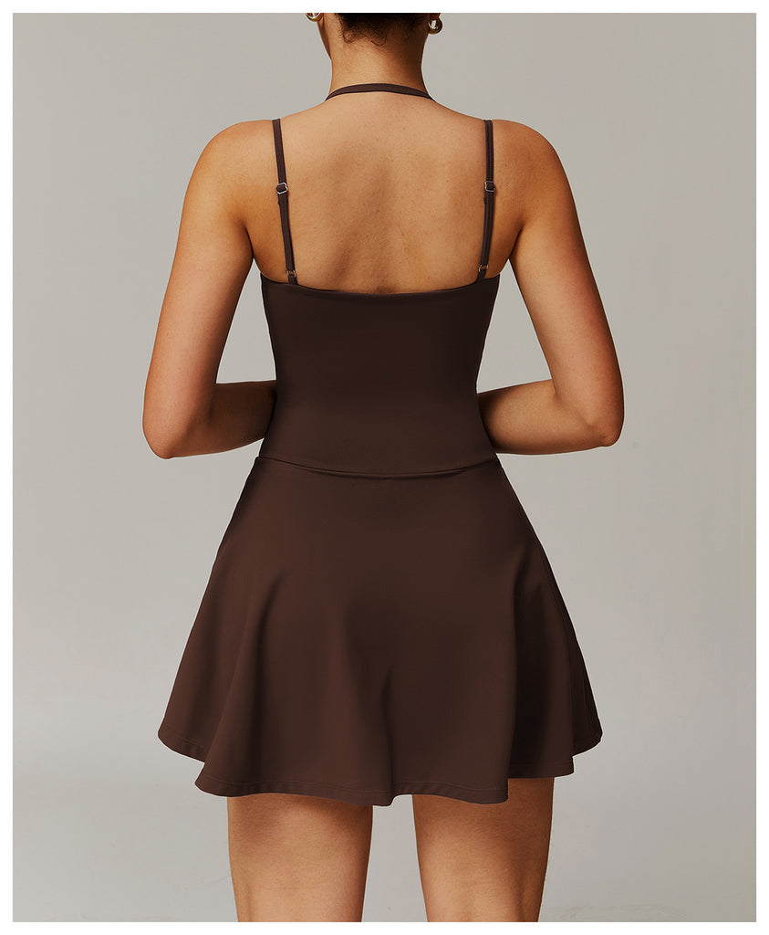 Move with confidence in the Sculpt & Flow Athletic Dress—where performance meets feminine charm. Designed with built-in shorts and a sculpting bodice, this dress gives you support, coverage, and style in one effortless piece. The sweetheart neckline and flared hem bring soft elegance, while the hidden shorts keep you secure from studio to street.
