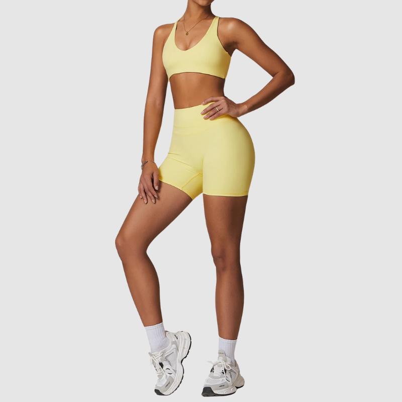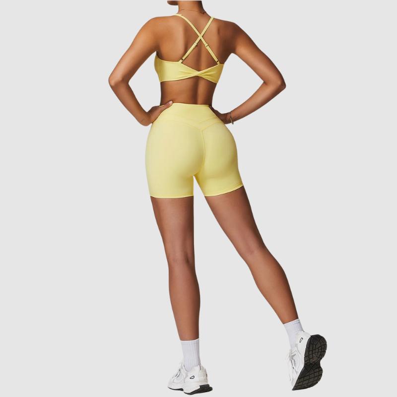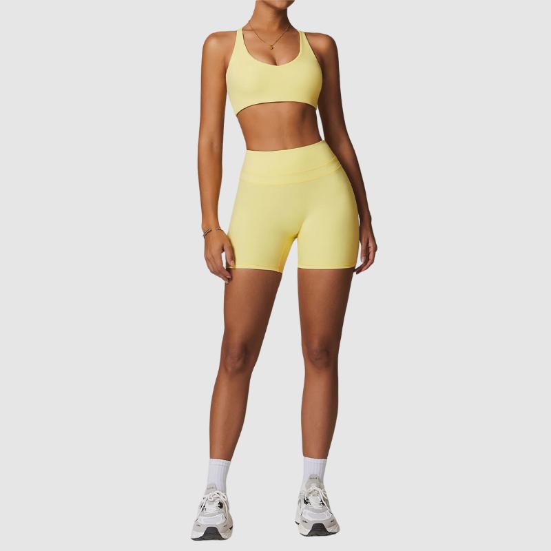 Crafted from high-quality nylon elastane, this sports bra is lightweight, durable, and soft against the skin. Its moisture-wicking properties ensure lasting comfort through any activity.
