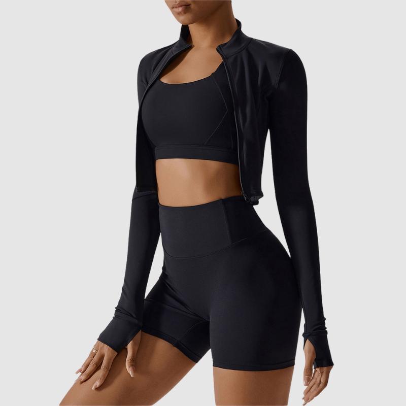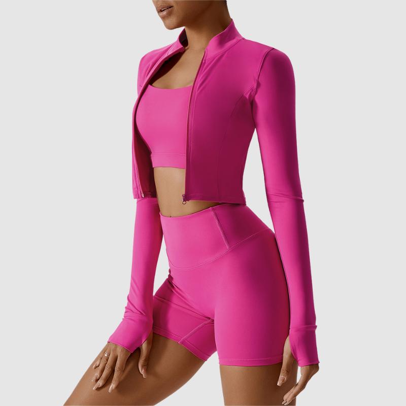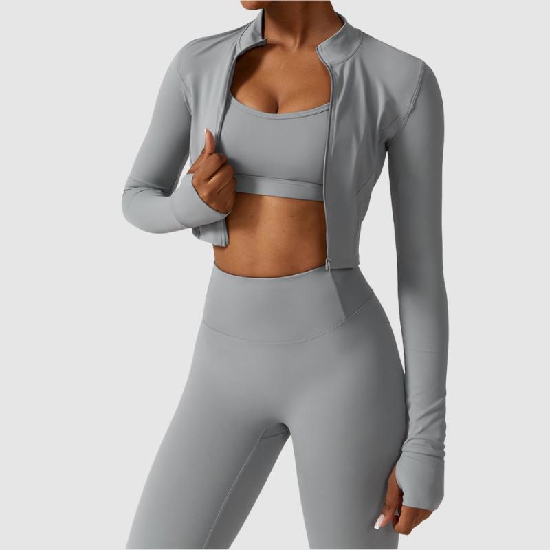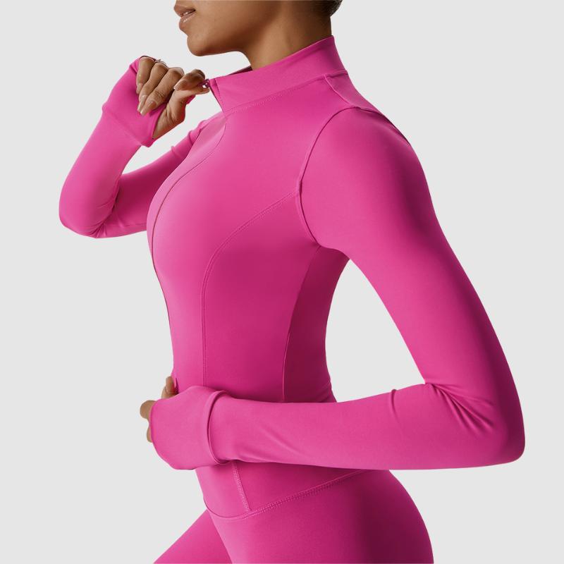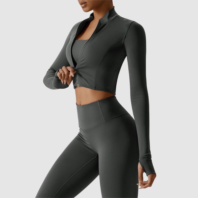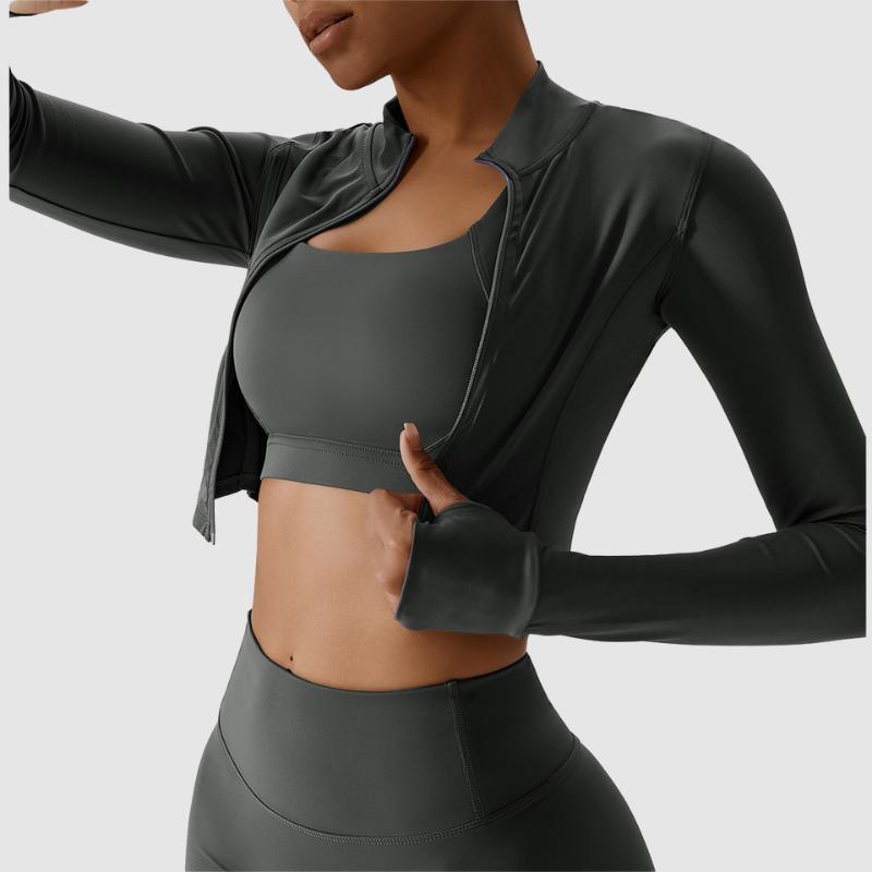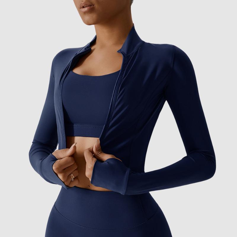 This jacket combines minimalist design with everyday functionality, making it a go-to piece for any occasion. Transition seamlessly from gym sessions to casual outings by pairing it with high-waisted leggings or joggers for a sporty, chic look. Its lightweight yet durable fabric ensures comfort and style all year round.