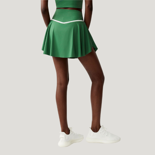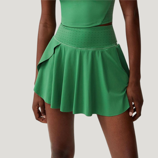 • Flowing A-line skirt with side slit for a sporty, feminine silhouette