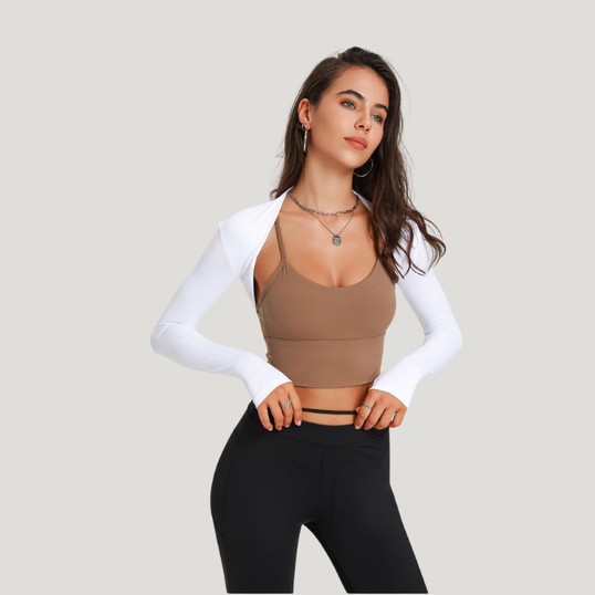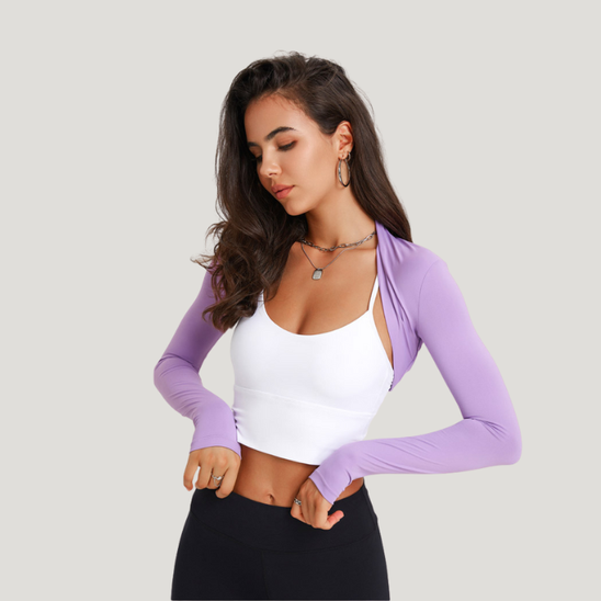 - Long sleeves and cropped length create a flattering, modern silhouette