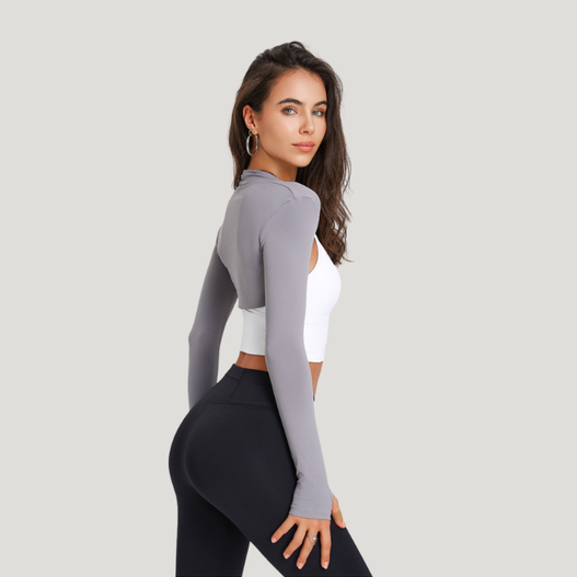 - Sporty slim-fit long-sleeve crop top for a sleek, sculpted look