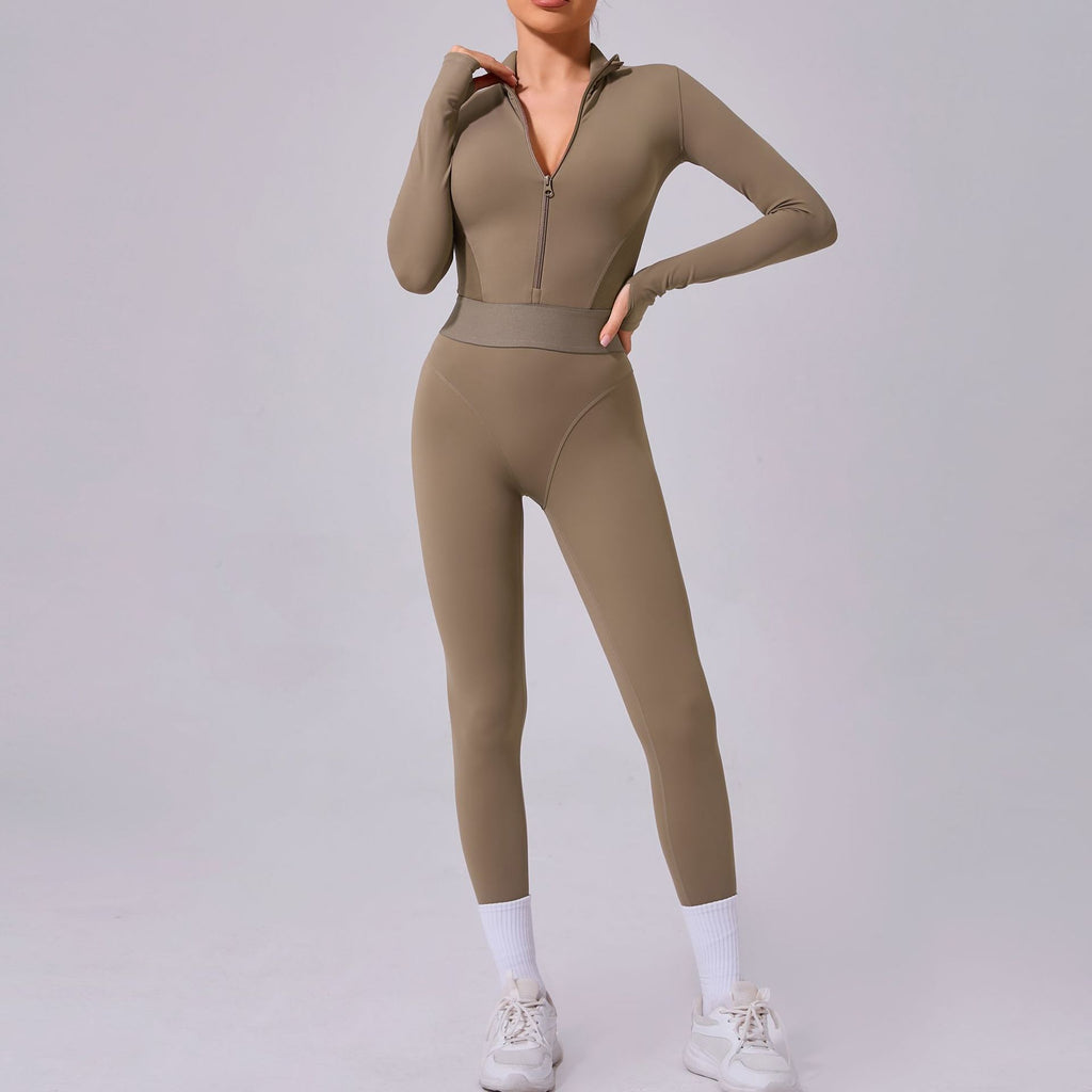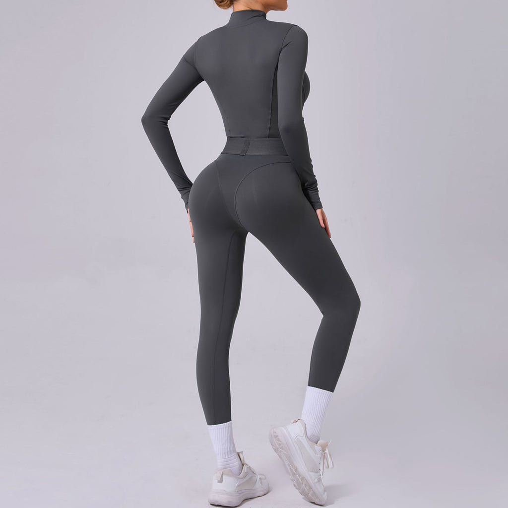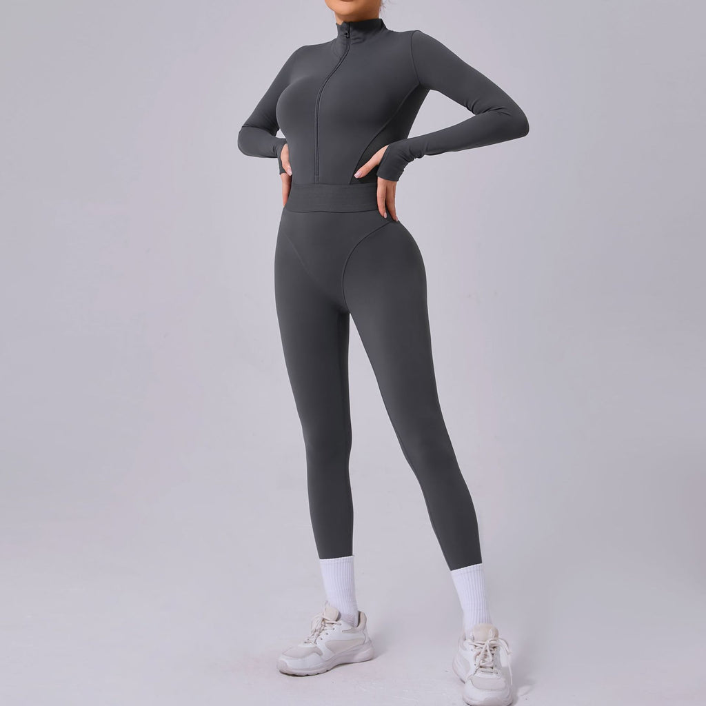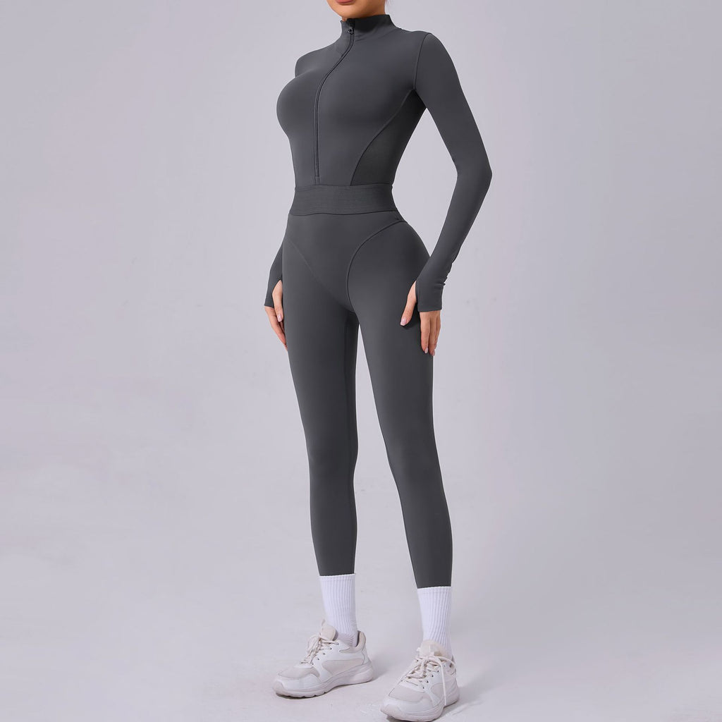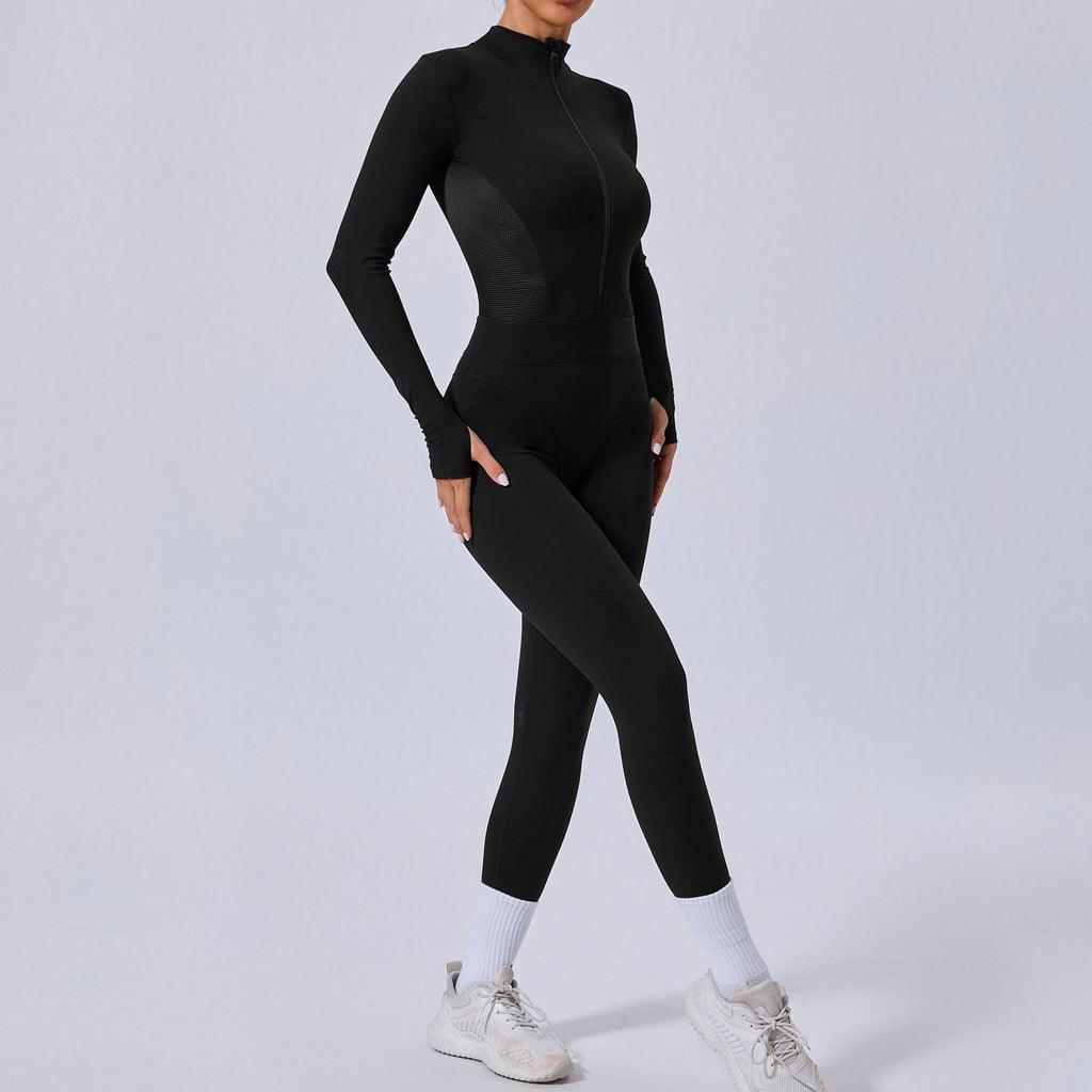 ✓ Sleek full-body silhouette with a high neckline and front zipper closure for a streamlined, modern look