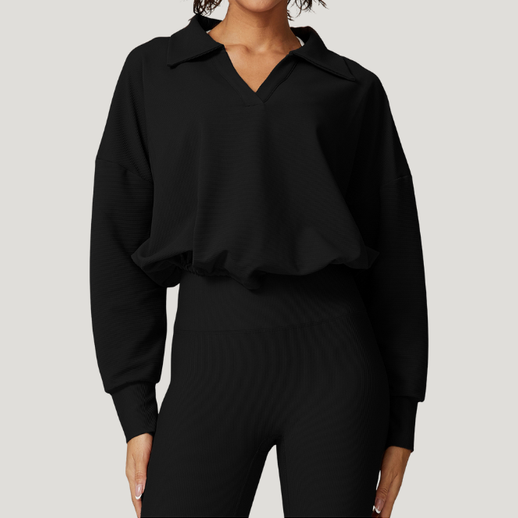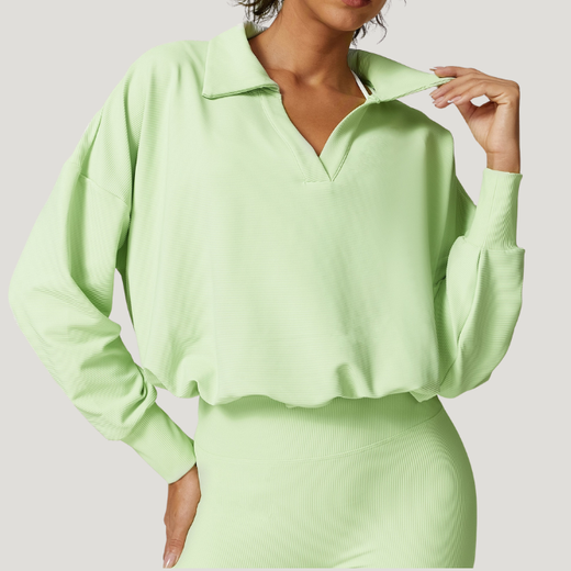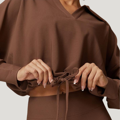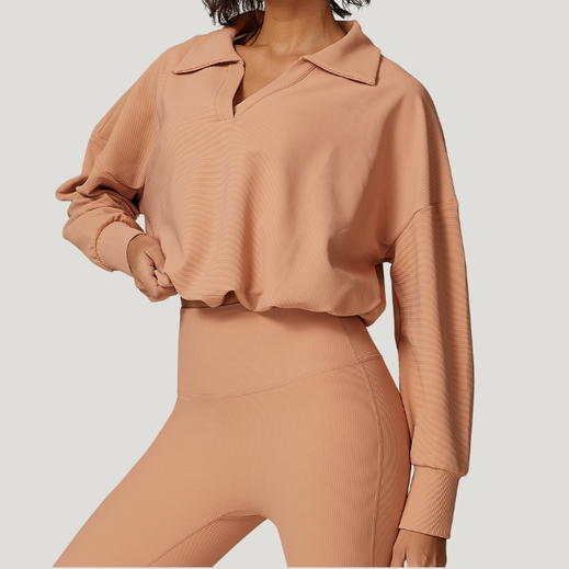 - Short-length cut with long sleeves for a trendy, cropped silhouette