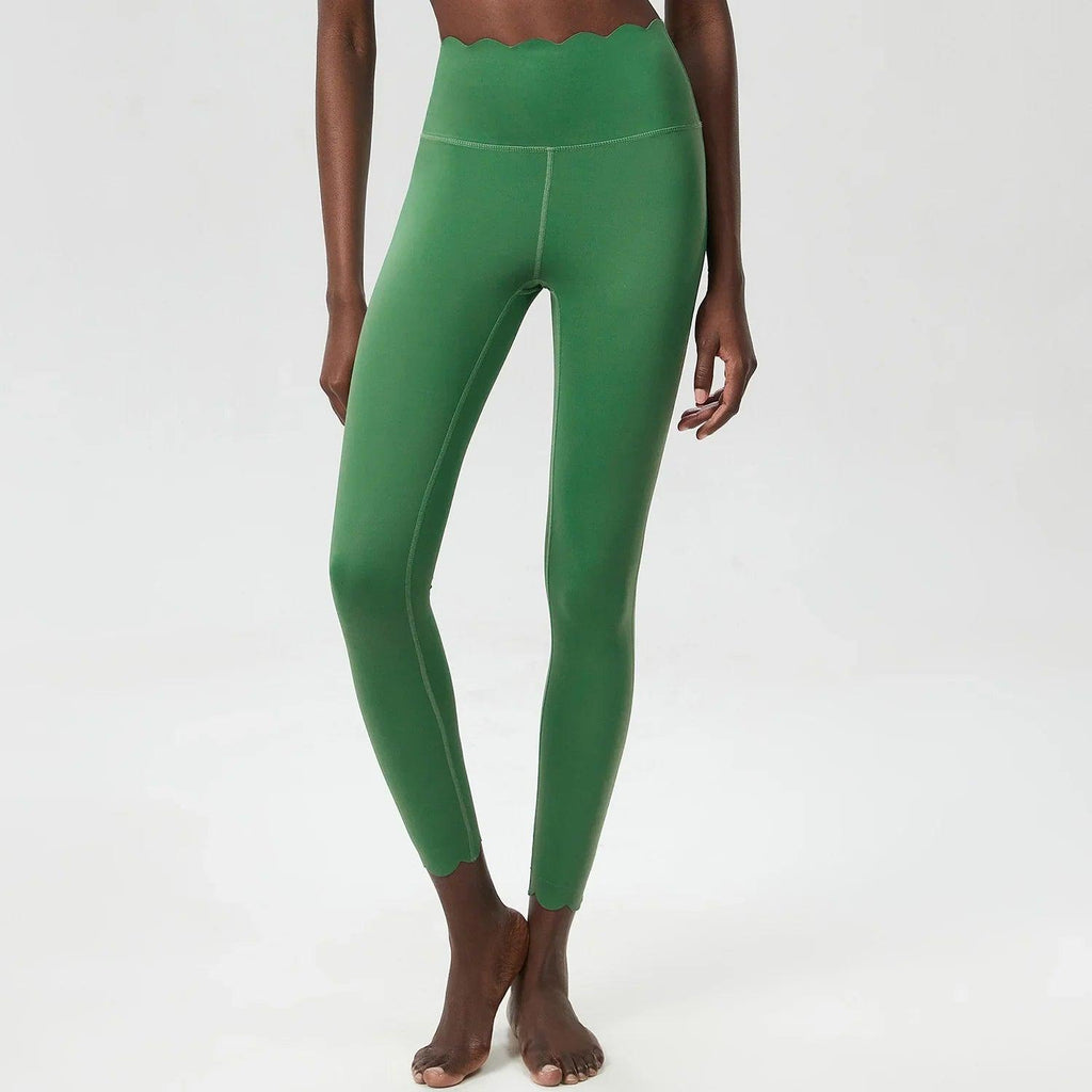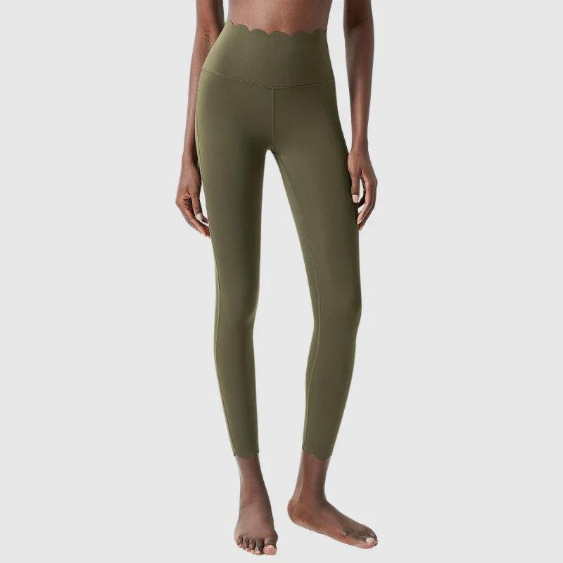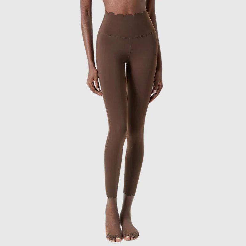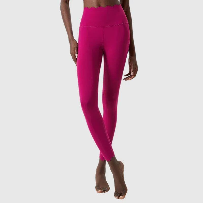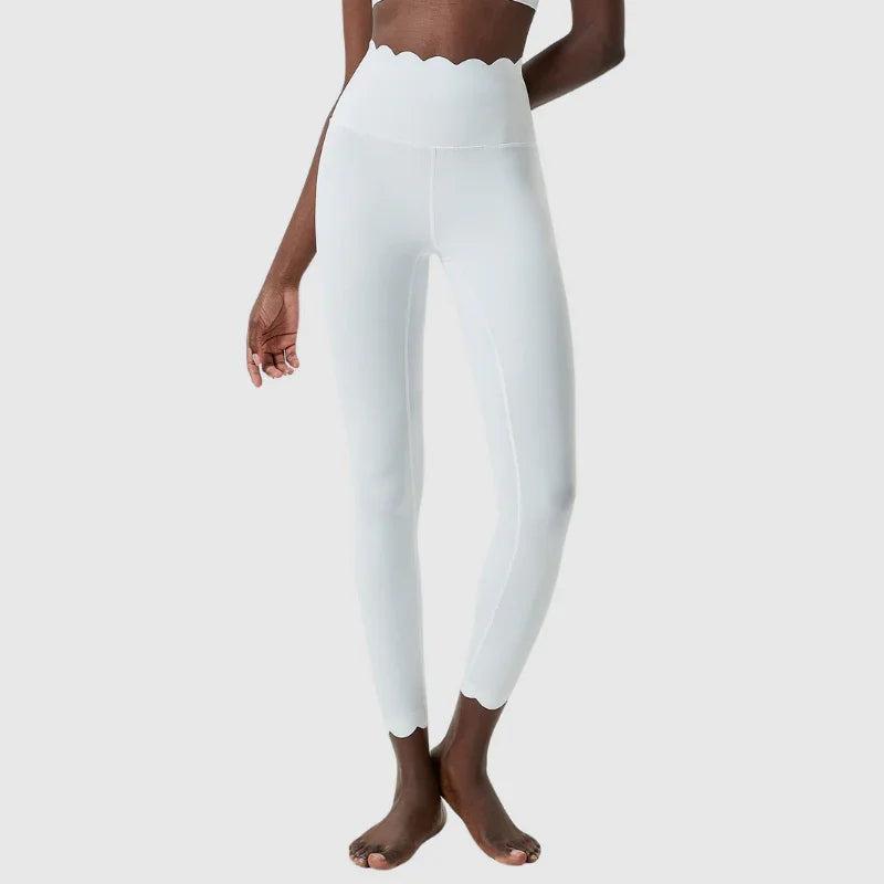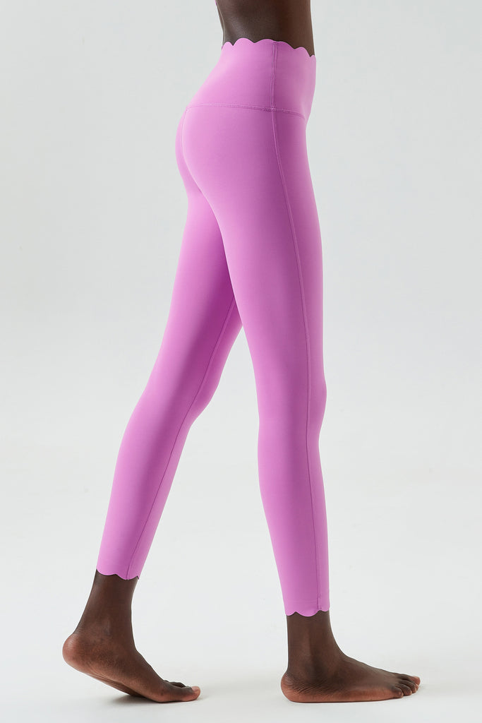 With a unique scallop waistline, high-rise fit, and soft, moisture-wicking fabric, these leggings keep you comfortable, breathable, and stylish through every move.