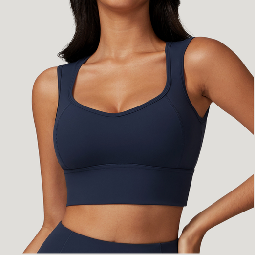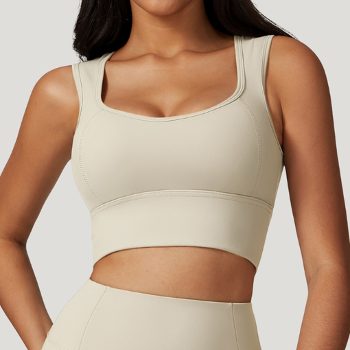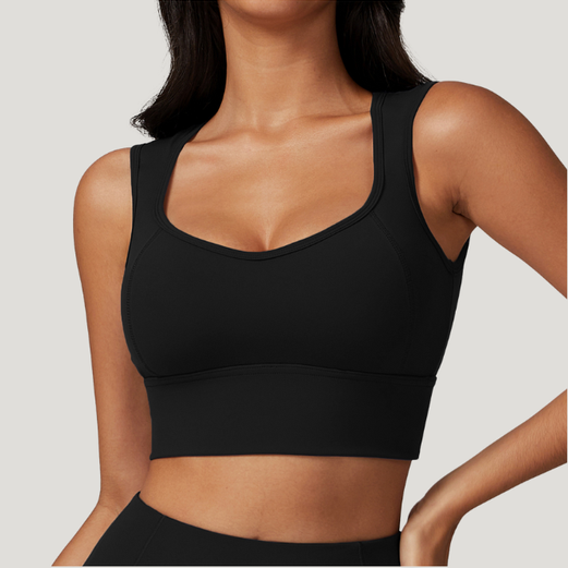 - Scoop neckline offers soft, feminine coverage with light-to-medium support