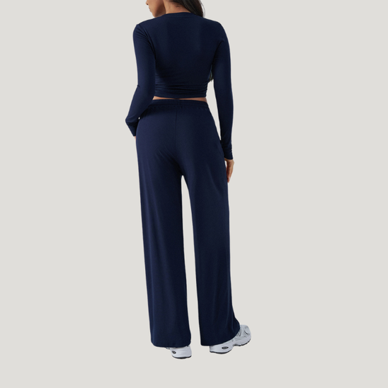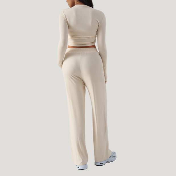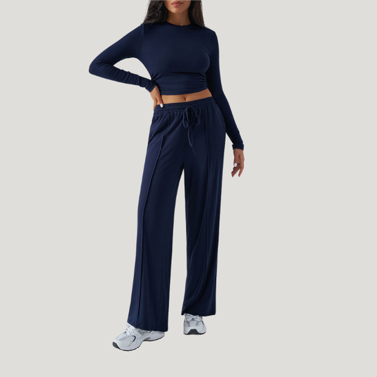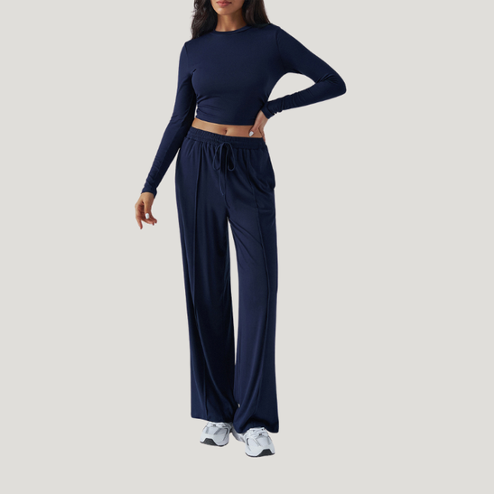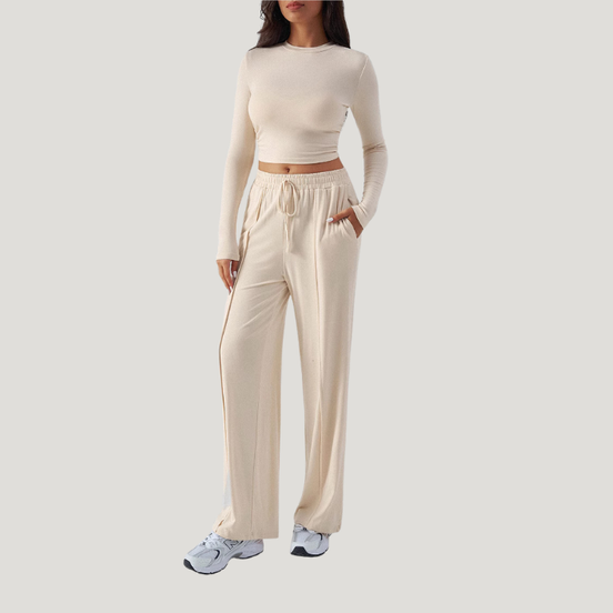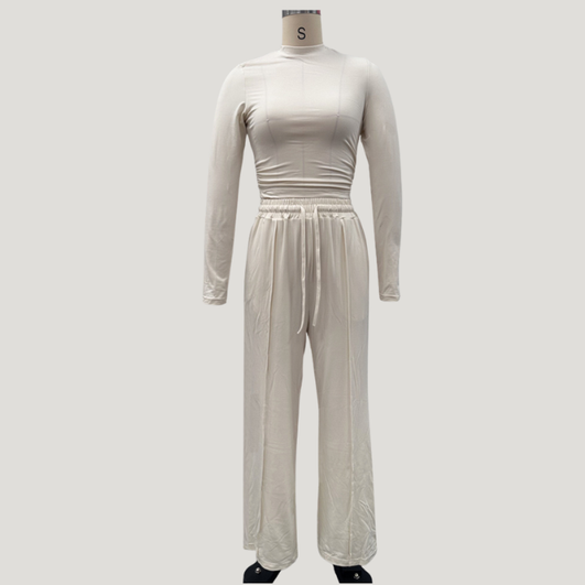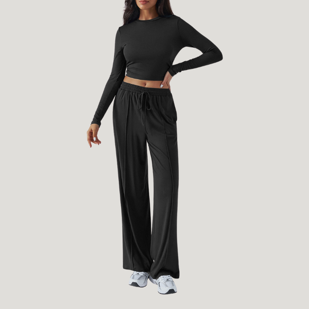 • Crew neck long-sleeve top with a cropped length for modern styling